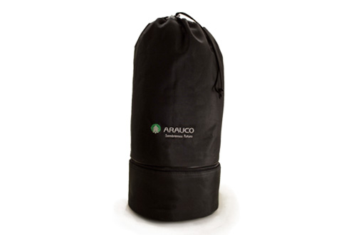 Bolso con compartimiento central principal con cierre de cordón, en inferior cuenta con bolsillo cilíndrico y tirante ajustable.