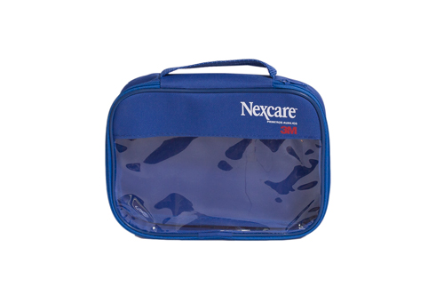 Botiquín de único comportamiento principal con bordes redondeados con PVC cilíndrico, frente transparente en PVC para mostrar el interior y manilla superior fija.