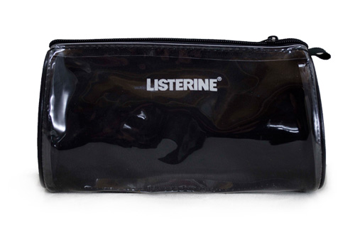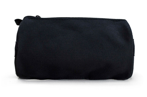 Estuche con frente transparente en PVC, cierre en borde superior y tirador al costado.